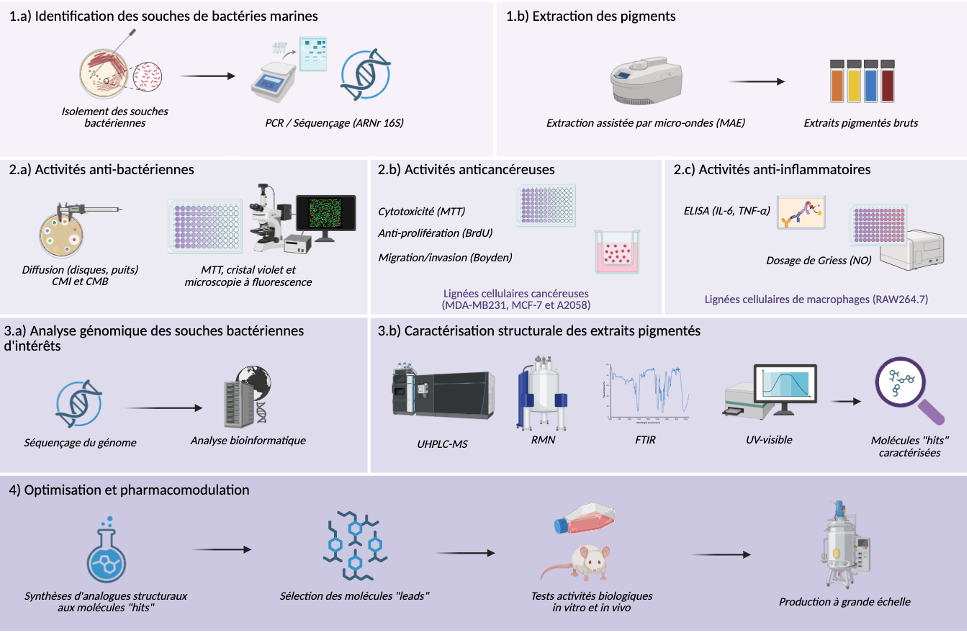 (2025-2028) Production et caractérisation de nouveaux pigments naturels et de synthèse bio-inspirés issus de bactéries marines du littoral charentais à visée thérapeutique